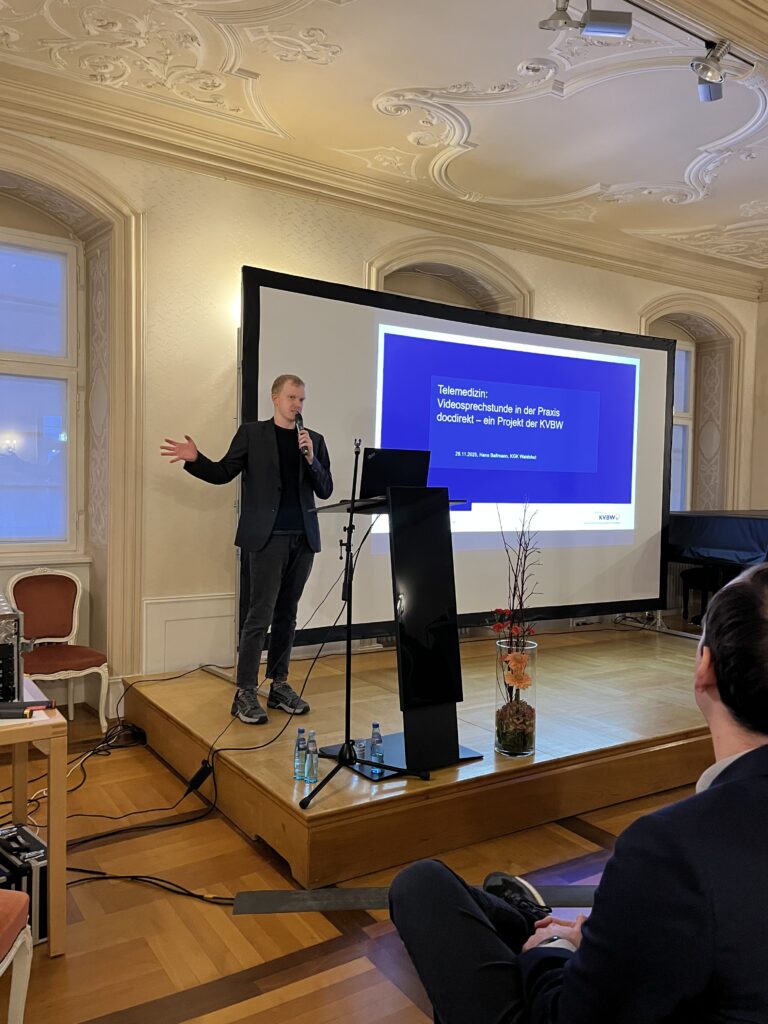Einen ersten Impuls lieferte Hans Ballmann von der Kassenärztlichen Vereinigung Baden-Württemberg (KVBW) mit seinem Vortrag zur Telemedizin. Er beleuchtete die Rolle der Videosprechstunde in ambulanten Praxen und stellte insbesondere das Projekt docdirekt vor. Diese innovative digitale Versorgungsplattform, die seit dem 3. November im Einsatz ist, entlastet nicht nur die medizinische Notrufnummer 116117, sondern bietet Patientinnen und Patienten auch eine 24/7-Erreichbarkeit für medizinische Ersteinschätzungen und Videosprechstunden. Damit wird eine bedarfsgerechtere Steuerung der Versorgung ermöglicht, insbesondere in sprechstundenfreien Zeiten. docdirekt zeigt, wie Telemedizin dazu beitragen kann, die medizinische Versorgung zu optimieren und Wartezeiten zu reduzieren.