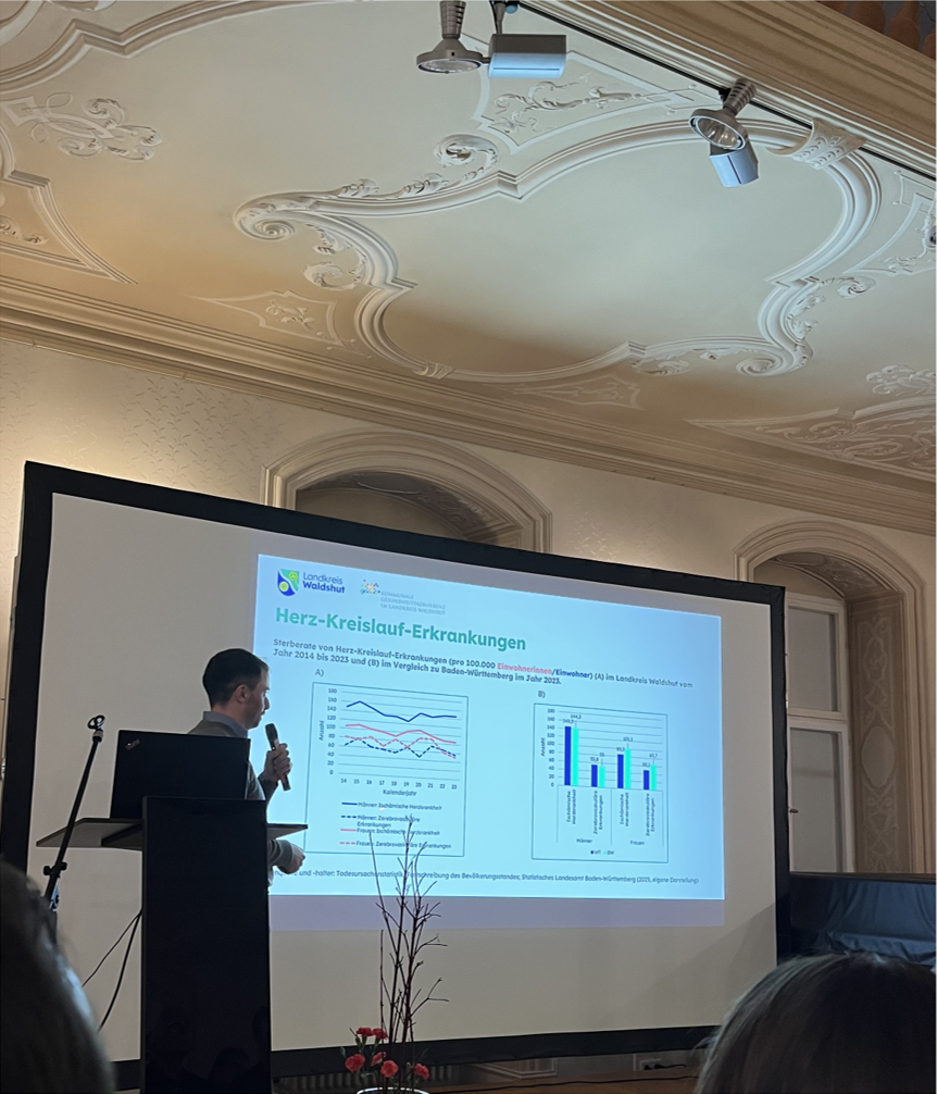 Michel Hornschuch vom Gesundheitsamt Waldshut präsentierte anschließend die Hauptaussagen des Gesundheitsberichts, der im Januar 2026 veröffentlicht wird. Diese detaillierte Analyse der gesundheitlichen Situation der Bevölkerung dient als wichtige Grundlage für zielgerichtete Maßnahmen zur Gesundheitsförderung, Prävention und Stärkung der ambulanten medizinischen Versorgung.